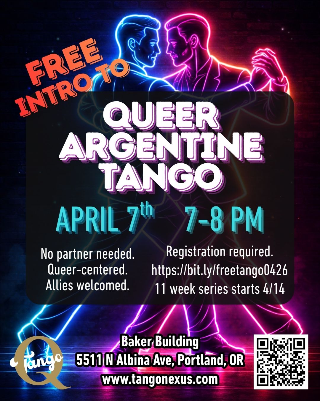 Join Q Tango for a FREE Intro to Argentine Tango Class on Tuesday, April 7th, 2026 from 7–8 PM! Whether you’re a complete beginner or curious about exploring this captivating dance, this class is the perfect way to get started.